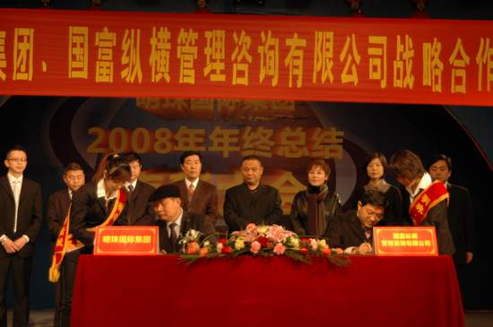 1月23日,國(guó)富縱橫總裁趙龍博士、策劃總監(jiān)周楊博士在明珠集團(tuán)總部與明珠集團(tuán)董事長(zhǎng)李繼和先生等高層領(lǐng)導(dǎo)一起出席了盛大而隆重的明珠集團(tuán)、國(guó)富縱橫管理咨詢有限公司戰(zhàn)略合作簽約儀式。國(guó)富縱橫和明珠集團(tuán)都對(duì)此次合作充滿了信心,愿意為西部家居事業(yè)的發(fā)展做出很大的努力。
